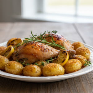 Lemon garlic salmon tray bake – easy & healthy!